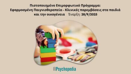 To Psychopedia Κέντρο Εκπαίδευσης και Ψυχοθεραπείας σας προσκαλεί στο Πιστοποιημένο Επιμορφωτικό Πρόγραμμα με θέμα: Εφαρμοσμένη Παιγνιοθεραπεία – Κλινικές παρεμβάσεις στα παιδιά και την οικογένεια. [...]